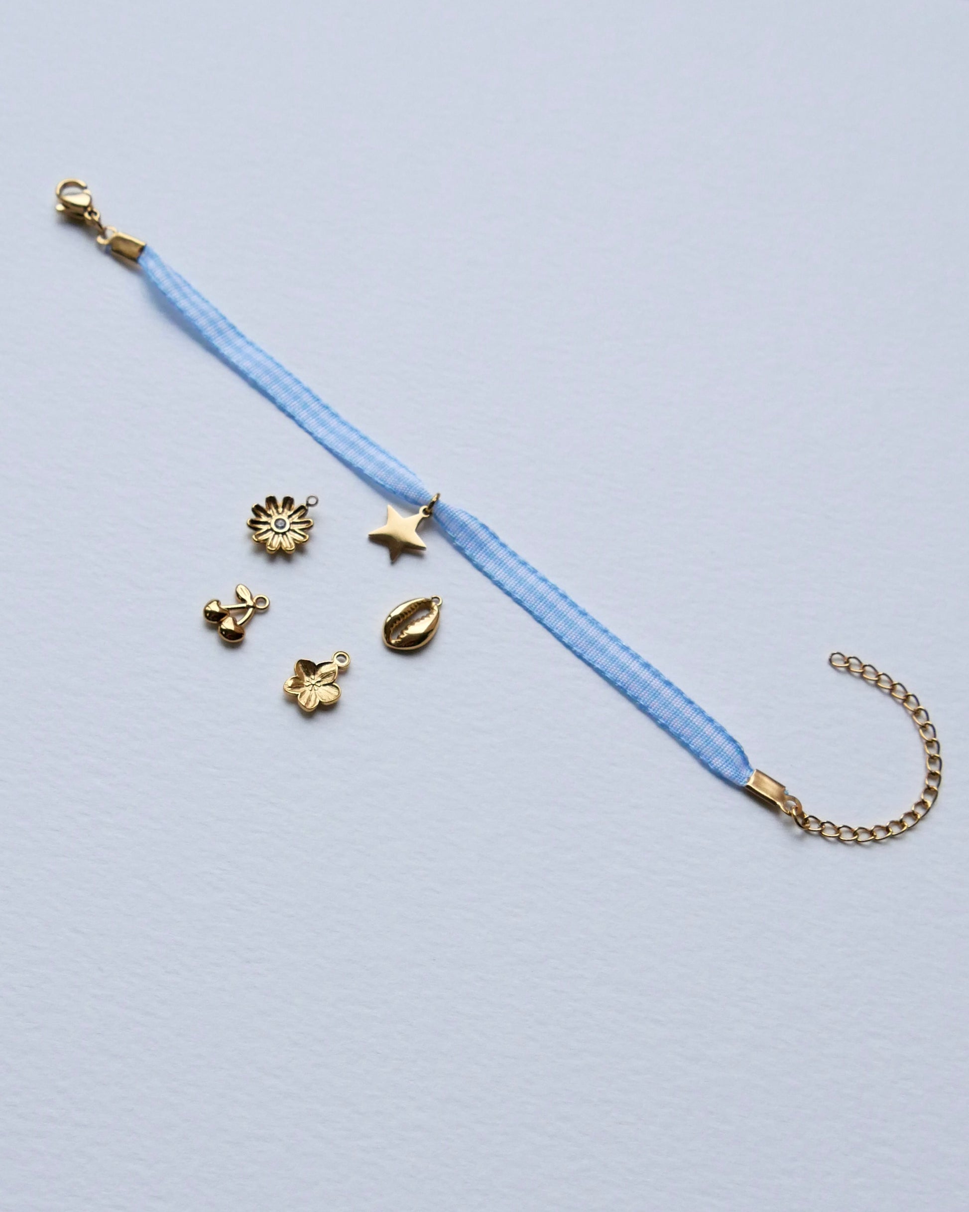 Ce bracelet en tissu VICHY, est personnalisable avec la breloque de ton choix.