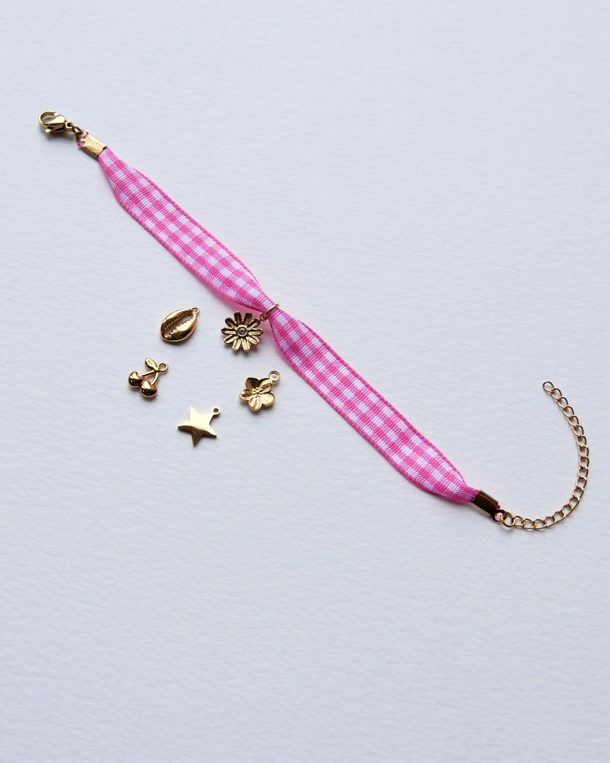 Ce bracelet en tissu VICHY, est personnalisable avec la breloque de ton choix.